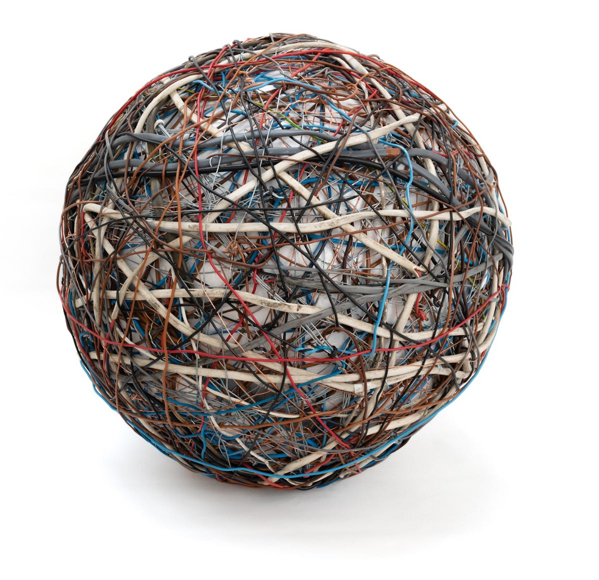 Assortment of copper cable, galvanized wire, epoxy £50 note, wooden plinth, motor