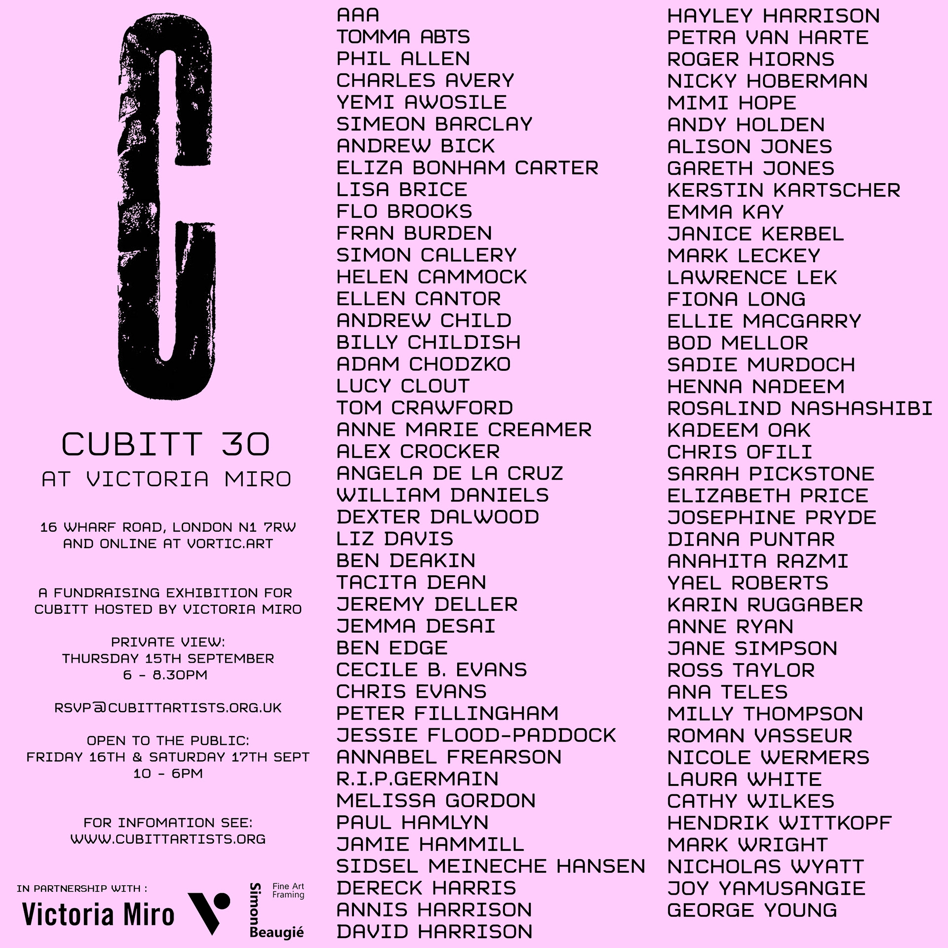 Cubitt 30 at Victoria Miro flyer, 2022